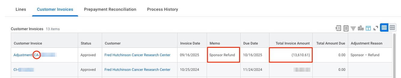 GCA creates a Workday Customer Adjustment for the amount of the refund. It is located in the Workday Billing Schedule in the Customer Invoices section and has the following attributes: